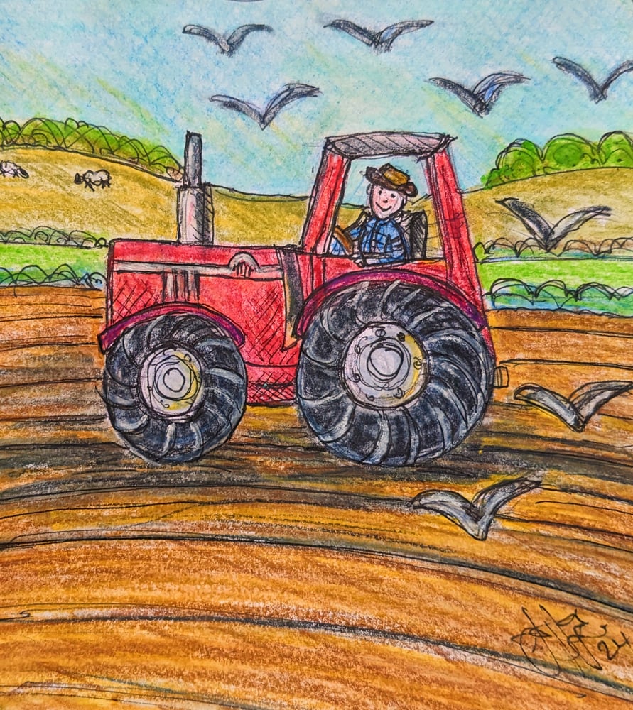 Lovely little square card with wooden hanging tractor. Something different for Easter